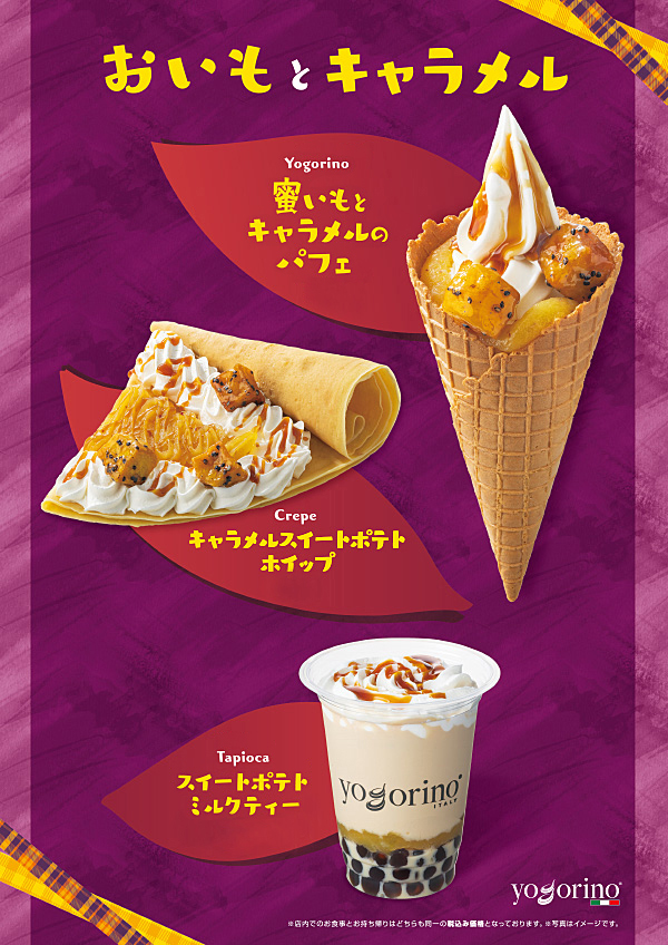 【期間限定】さつまいもを使った初めてのヨゴリーノが登場!さつまいもペーストに蜜いもを使った大学いもをトッピング。キャラメルソースで仕上げた絶品のおいしさ!!